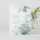 Ta med den lugna skönheten från en eterisk trädgård till din stora dag med denna fantastiska digitala botaniska layout. Denna design har en frodig arrangemang av genomskinliga teal- och salvia gröna blad, inklusive invecklad skelettartärstruktur och mjuka eukalyptus kvistar. Bland löven finns mjuka rosa och elfenbensvita blommor, vars kronblad är ömt omgivna av fina gyllene linjer. En minimalistisk gyllene rektangulär ram definierar det centrala utrymmet, mot en ren, dimmig vit bakgrund. De högupplösta texturerna och luftiga kompositionen skapar en sofistikerad, modern-romantisk stämning för era ceremonidetaljer. Denna botaniska ram är ett felfritt val för ett modernt vår- eller sommarbröllop. Den svala teal- och mjuka rosa färgen gör den till en felfri passform för en elegant utomhusbröllopsfest, en förfinad förlovningsfest eller en chic morgonbröllopsm
