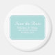 Modern och chic Enkelt Elegant bröllop Spara datum magneter med en elegant utformning av biljett emblem i turkos. Den här klassiska designen och snyggten är enkel att anpassa med dina bröllop-detaljer. Om du vill ha fler anpassningsalternativ klickar du på Anpassa.