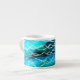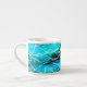 En öga-mugg som fångar Espressos-kaffe med en turkosblå, mörk grönt, vit och svart abstrakt "Vågar design, från en vattenfärg av Judy Adamson. Det finns också möjlighet att matcha tekrukor, pitcher och olika mugg.