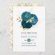 Turkos - Teal och Guld Blommigt Bröllop Spara Datumet