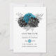 Turkos - Teal Svart och Silver Blommig Bröllop Spara Datumet