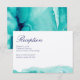 Ett modernt och elegant vattenfärgsbröllopsmottagningskort har ett abstrakt turkost hav, alla dina detaljer är skrivna i en blandning av modern och handskriven typografi, tryckt på Artisan filtvat papper för en konstnärlig känsla.