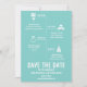 Berätta för alla dina gäster lite om din relation ~ kanske några roliga fakta de inte känner till! Dina gäster kommer att älska detta roliga och fantasifulla Spara Datumet i färgen Ljust Turkos och Vitt! För förfrågningar om anpassade designändringar av den oberoende designern, vänligen maila paula@labellarue.com INNAN du anpassar eller beställer.