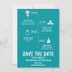 Berätta för alla dina gäster lite om din relation ~ kanske några roliga fakta de inte känner till! Dina gäster kommer att älska denna roliga och fantasifulla Spara Datum i färgen Turkos / Teal och Vit! För förfrågningar om anpassade designändringar av den oberoende designern, vänligen maila paula@labellarue.com INNAN du anpassar eller beställer.