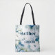 Elegant bröllopstaska med vattenfärg blommor i blå turkos med vitt. Vacker som gåva till brudgummens mor och kan anpassas för alla andra tillfällen.