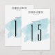 En modern bröllops bordnummer har turkos vattenfärg tvätt bakgrund.