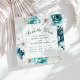 Meddela om din speciella dag med denna teal vildblomma "save the date" som presenterar ömtåliga akvarellblommor och botaniska detaljer på en mjuk, off-white bakgrund. Den eleganta typografin och det rena arrangemanget skapar en tidlös boho-design perfekt för trädgårds-, sommar- eller romantiska firanden. De rika teal-färgerna tillför en raffinerad och modern touch samtidigt som de bibehåller en naturlig känsla.