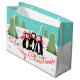 Med pingviner, stjärnor och snöflingor.