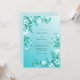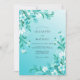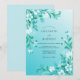 Ömtåliga turkosa och vita blommor dansar över en mjuk gradientbakgrund. Frodig grönska flätas samman med blommorna och skapar en romantisk och luftig känsla. Denna design frammanar en känsla av naturlig skönhet och stillsam elegans för en speciell tillställning.