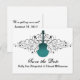 Perfekt för att tillkännage ett rock and roll-tema bröllop är detta rockchica Virvlande Gitarr Spara Datum Postkort i turkos. Denna unika design har en damaskgitarr flankerad av kaskader av eleganta virvlande utsmyckningar. Lätt att anpassa, lägg bara till din bröllopsinformation i de angivna utrymmena. Klicka på "Anpassa"-knappen för att hitta ytterligare anpassningsalternativ.