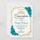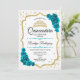Turkos Vit Guld Elegant Blommig Quinceanera Inbjudningar