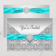 Eleganta turkosblå födelsedagsinbjudningar med silverdiamantkant. Denna malldesign fungerar bra som en inbjudan till en födelsedagsfest, cocktailparty, pensionsfest och alla andra speciella tillfällen. Anpassa med ditt val av teckensnittsstil och teckensnittsfärg. Elegant och klassisk silver turkosblå kuvert design födelsedagsinbjudan mall.