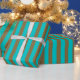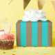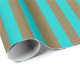 Turkosblått och guldrandigt presentpapper med vackra turkosblå och gula ränder.