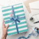 Turkosrandar som slår in papper. Högkvalitativ utskrivavet matte, glansigt, linne eller papper för Tyvek pappert gåvasjal. Modernt randigt mönster som göras och skrivs ut i USA. Ideal för födelsedag, årsdag och bröllopgåvor eller julklappar.