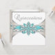 Vackra tealturkos blått och silver-turkos Quinceanera-inbjudan. Den här födelsedagsfesten av elfenben och tealblått Quinceanera-elegant kan enkelt anpassas efter party eller händelse.