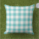 Pillow-designen har en avslappnad gingham plaid/check mönster som är perfekt för sommartid! Observera att du kan anpassa turkos-/akvblått-bakgrunden färg för att koordinera med uthuden.
