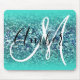 Skapa din egen turkos ombre kant och faux teal blue glam glitter monogrammed musmatta. Anpassa monogrammet för svartvit personlig ... inklusive teckensnitt färg, calligraphy stilar och storlekar. Övertoningsgrafiken och glitter är digitala bilder.