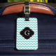 Turq/Aqua Wht Chevron Black Quatrefoil Monogram Bagagebricka
