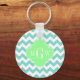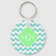 Turq/Aqua Wht Chevron Mint 3 första monogram Nyckelring