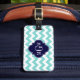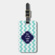 Turq / Aqua Wht Chevron Navy 3 Initial Monogram Bagagebricka