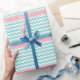 Turq/Aqua Wht Chevron Rosa Namn Monogram Presentpapper