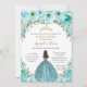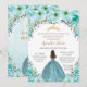 Turquise Blue Blommigt Princess Krona Quinceañera Inbjudningar