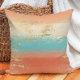 Denna dekorativa kudde har en modern abstrakt utformning med blandat vågrät lagrar av korall, turkos, grädde och mjuka guld-accenter. Ge, det plågade struktur och den metalliska effekten, är en contemporary men rustisk charm, perfekt för att tillföra värme och viskhet till alla utrymmen. Idealisk för kust, boho eller eclectiskt insida skapar denna kudde ett slående påstående på soffa, stolar eller sängar.
