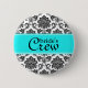 Turquise Damask Bride's Crew Button Knapp