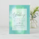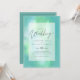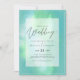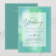 Modern bröllopsinbjudan med textmall fält på båda sidor och ett moln av grönblått färg.