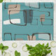 En abstrakt konstdesign inspirerad av tidigt 1900-talets moderna mönster, med geometriska deformerade fyrkanter i teal grönt och guld, med turkobakgrunden.