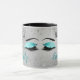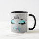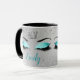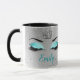 Denna förbluffande turkos Glitter Ögon Monogram Mugg har en Silver drottnings Krona och ett par öga lock med Turquise glitter eyeshadow, diamantéeffektstomme med långa svarta piskor på silver glitter vid botten. Anpassa till valfri namn för att matcha turkos. Designad av Jacqueline.
