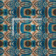 Decorative Southwest Native tribal ethetnisk asymmetri mönster i skalor av turkos, grönt och jordnära guld och brunt..