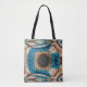 Decorative Southwest Native tribal ethetnisk asymmetri mönster i skalor av turkos, grönt och jordnära guld och brunt..