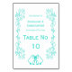 Turquise Klockor Scrollwork Design Bröllop Bordsnummer