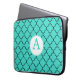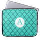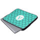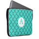 En elegant turkos och svart mönster dekorerar snyggtens laptop sleeve. Anpassa laptop sleeve genom att ändra monogrammet brev till kostym till dina behov. Designen kommer från originalteckningen.