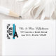 Turquise och Black Damask Eiffel Torn Returadress Etikett