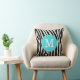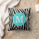 Cute trendig giftig chic turkos och svart zebra rand anpassningsbar monogramkudde. Lägg till en personlig, snyggt zebra tryck-kudde i vardagsrummet eller sovrummet. Ändra teckensnittet stil, flytta text med mera genom att klicka på knappen "Anpassa".