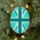 Turquise och Teal Union Jack 2 Julgransprydnad Keramik