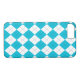 En söt turkos-blå och vit argyle mönster-design i ett telefonfodral.