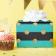 Turquise - Aqua Blue och Black Rand med Guld Foil Polka dots Mönster Födelsedagsfest.