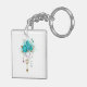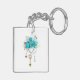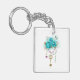 Antique guld nyckel med trendig turkos ro dekorerat med löv av vitt guld och rosa och blått pärlor. Fashionable färg. Turquise ro. Vitguld. Blå tiffany.