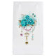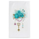 Antique guld nyckel med trendig turkos ro dekorerat med löv av vitt guld och rosa och blått pärlor. Fashionable färg. Turquise ro. Vitguld. Blå tiffany.