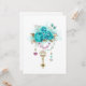 Antique guld nyckel med trendig turkos ro dekorerat med löv av vitt guld och rosa och blått pärlor. Fashionable färg. Turquise ro. Vitguld. Blå tiffany.
