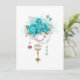 Antique guld nyckel med trendig turkos ro dekorerat med löv av vitt guld och rosa och blått pärlor. Fashionable färg. Turquise ro. Vitguld. Blå tiffany.
