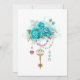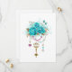 Antique guld nyckel med trendig turkos ro dekorerat med löv av vitt guld och rosa och blått pärlor. Fashionable färg. Turquise ro. Vitguld. Blå tiffany.