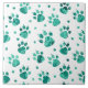 Keramiskt plattor med tassar från kutym djur, sömlös mönster. Abstrakt-fläckad turkos katt eller hund fotavtryck på vit bakgrund. Ljusa Turkos-fläckade och prickade tassar. Abstraktens djungel leopard stil mönster Ceramic Tile. Keramiska plattor, för barn badrum. Jungle Animals Tassar Collection.
