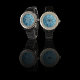 Njut av den här vackra, blanka, turkos, blomma, medallion. Swirled vinkart surroundflöde i designens centrum.