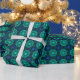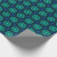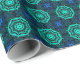 This striking wrapping paper features a bold turquoise and blue kaleidoscope fractal pattern arranged in a seamless geometric repeat. Intricate symmetrical shapes and layered textures create a dramatic design that blends abstract symmetry, psychedelic color, and modern digital art into a vibrant decorative pattern.