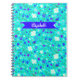 Little floral pattern notebook to personalize with a name. Turquoise color with white, blue and purple flowers design. Add a name to the template over a bright blue banner. Use this lined, spiral bound notebook as a diary, recipe keeper, poem writing, or give as a gift.