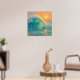 Artwork of a turquoise wave in a pastel painting style with a sun in the background. This art captures the precise moment a towering wave crests and curls into a turquoise tunnel, all bathed in the fiery glow of the setting or rising sun. It's a vibrant piece that brings the majesty of the open sea into your home. The sea glows in brilliant shades of teal, while sunlight melts across the surface in soft amber hues, a harmony of movement and light. This artwork is ideal for a living room, a surfer's inspired space, a dynamic office, or any area that needs a burst of color. If you are captivated by the raw beauty of the sea and crave artwork with saturated, contrasting color, this is a must-have. This art can be customized, printed, and or downloaded.
